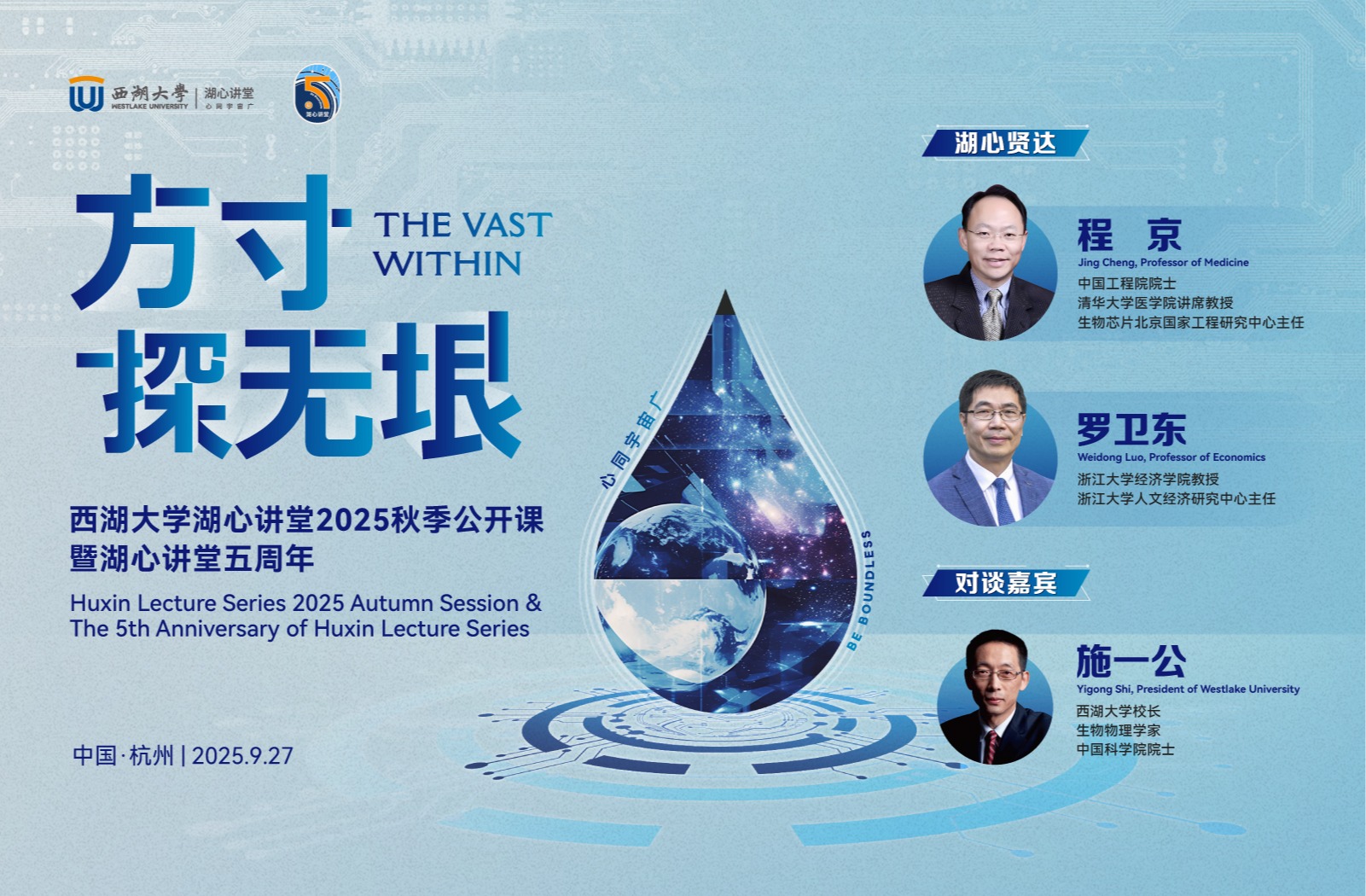 2025年9月27日, 西湖大学云谷校区的湖心讲堂,以一场“方寸探无垠”的深度对话,为五载求索写下生动注脚。