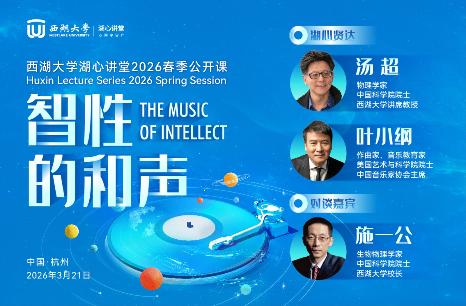 物理学家,中国科学院院士,西湖大学讲席教授,湖心讲堂2026春季公开课主讲人