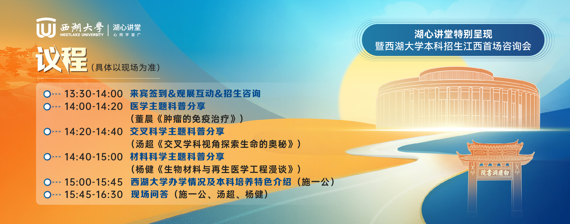 温馨提示:活动现场还将同步设置西湖大学本科招生咨询点,为江西师生家长提供答疑服务。